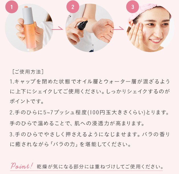 乾燥が気になる箇所はもちろんのこと、バラの香りでリフレッシュしたいときにもおすすめです。